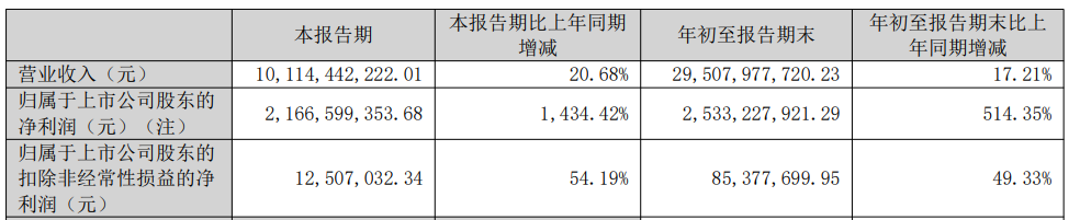 10月25日,国轩高科(002074)发布2025年三季报,第三季度营收为101.14亿元,同比增长20.68%;净利润为21.67亿元,同比增长1434.42%。