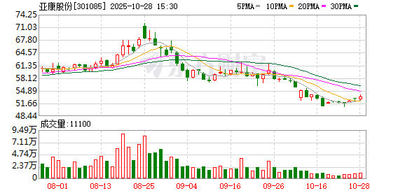 10月28日,亚康股份(301085)公布2025年三季报,公司营业收入为9.15亿元,同比下降23.5%;归母净利润为271万元,同比下降95.3%;扣非归母净利润为314万元,同比下降94.4%;经营现金流净额为1.76亿元,同比增长156.5%;EPS(全面摊薄)为0.0312元。
