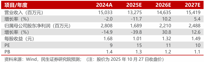 2025年10月27日,公司发布2025年三季报。2025年前三季度,公司实现营业收入93.25亿元,同比下降17.0%;归母净利润12.77亿元,同比下降40.6%。