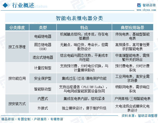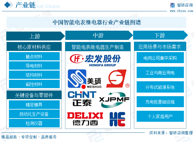 智能电表继电器行业已形成较为完整的产业链体系,上下游协同发展的生态格局逐步完善。上游主要包括银合金触点材料、铜材、工程塑料等原材料供应商,以及精密模具、自动化设备制造商,其中高端触点材料技术门槛较高,部分仍依赖进口;中游为继电器生产制造环节,形成以宏发股份、三友联众等龙头企业引领,电磁式、固态式和混合式多技术路线并存的发展格局,行业集中度持续提升;下游主要面向智能电表整机制造商,最终应用于国家电网、南方电网等电力系统,并逐步拓展至充电桩、分布式光伏等新兴领域。