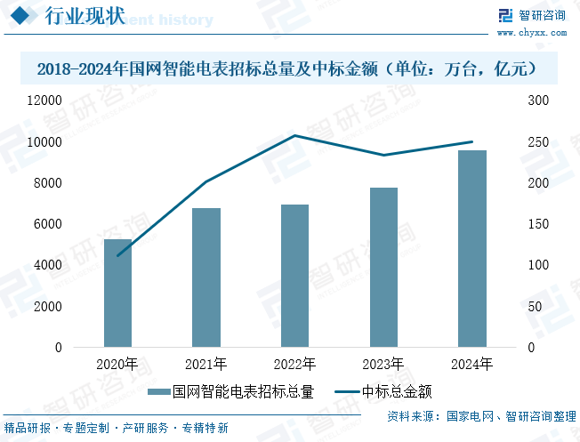 中国智能电表市场正迎来政策红利与技术升级的双重叠加机遇。政策端,国家电网与南方电网“十四五”规划明确提出2025年智能电表覆盖率超98%的硬性目标,叠加农村电网改造、分布式能源接入等专项补贴政策,形成从城市到乡村、从集中式到分布式用电场景的全覆盖需求。数据显示,2024年国家电网分3个批次完成电能表招标总量9528万只(单相表占比79.4%,三相表占比14.3%),配套采集器等设备265万只,中标金额达249.17亿元,同比增长7%。随着IR46国际标准全面落地推动产品迭代,高精度计量、双模通信、AI故障预判等功能成为标配,带动智能电表需求持续增长。预计2025年招标量将突破1亿只,市场规模超270亿元。