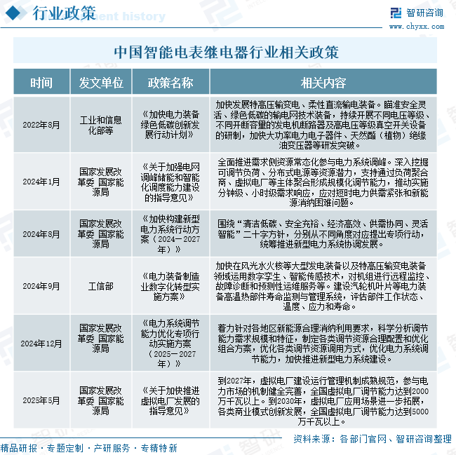 智能电表继电器作为智能电网建设中的关键核心部件,近年来在国家"双碳"战略和新型电力系统建设的政策驱动下迎来重大发展机遇。为推进电力行业绿色低碳转型和智能化升级,我国相继出台《加快电力装备绿色低碳创新发展行动计划》《关于加强电网调峰储能和智能化调度能力建设的指导意见》《加快构建新型电力系统行动方案(2024—2027年)》等一系列政策文件,明确提出要提升电网数字化、智能化水平,强化电力系统调节能力,加快虚拟电厂等新技术应用。这些政策不仅为智能电表继电器行业提供了明确的发展方向,更通过“四可”(可观、可测、可调、可控)技术标准的实施,推动继电器产品向高精度、高可靠性、智能化方向升级,为行业创造了广阔的市场空间和技术创新动力。