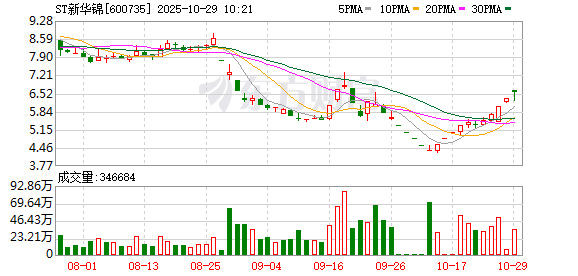 ST新华锦(维权)盘中涨停,已连收3个涨停板,截至9:25,该股报6.64元,换手率1.42%,成交量605.70万股,成交金额4021.85万元,连续涨停期间,该股累计上涨15.88%,累计换手率为15.67%。最新A股总市值达28.47亿元,A股流通市值28.25亿元。