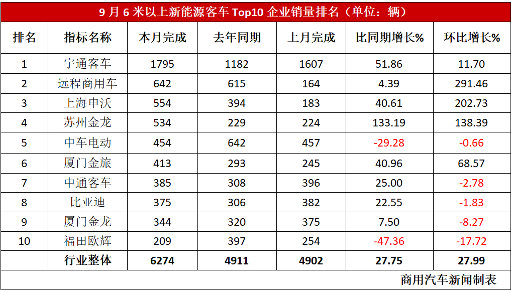 此外,共有宇通客车、远程商用车、上海申沃、苏州金龙、厦门金旅5家企业实现同环比双增。