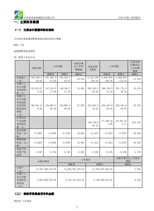 易成新能(300080)发布2025年三季度报告,该公司前三季度营业收入为30.1亿元,同比增长12.79%。归属于上市公司股东的净亏损为2.65亿元。归属于上市公司股东的扣除非经常性损益的净亏损为2.93亿元。基本每股亏损为0.1415元。