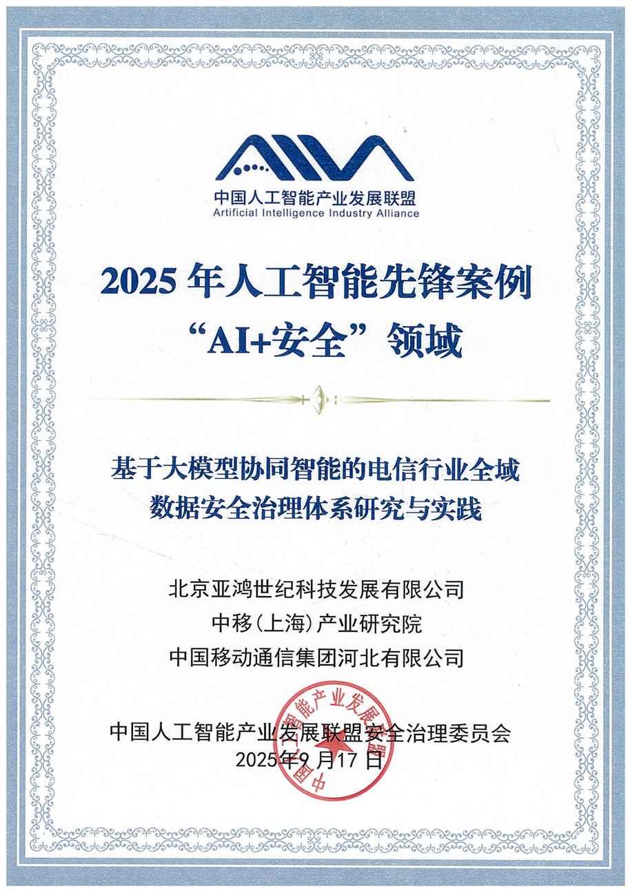 近日,任子行公司联合中移(上海)产业研究院、中国移动通信集团河北有限公司打造的 “基于大模型协同智能的电信行业全域数据安全治理体系研究与实践” 案例,成功斩获 AIIA 2025 年人工智能先锋案例殊荣。这一荣誉不仅印证了该方案在技术创新与产业应用上的卓越实力,更标志着任子行为电信行业破解数据安全治理难题提供了可复制、可推广的 “AI + 安全” 新路径。