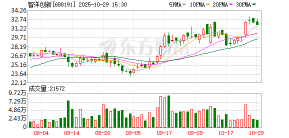 证券时报·数据宝统计显示,智洋创新今日收盘价为31.81元,下跌1.33%,日换手率为0.93%,成交额为6907.94万元,全天主力资金净流出205.77万元,近5日该股累计上涨7.50%,近5日资金合计净流出709.74万元。