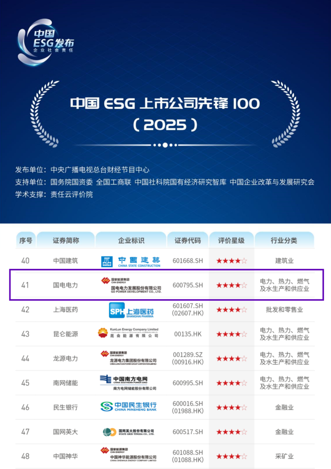 “中国ESG上市公司央企先锋100(2025)”榜单