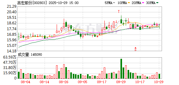 二级市场上,截至10月29日收盘,吉宏股份报18.33元/股,总市值82.56亿元。今年以来,公司股价区间涨幅超40%。