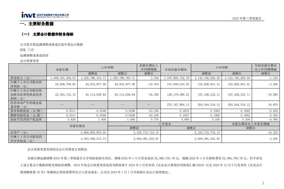 10月21日,英威腾(002334)发布2025年三季报。2025年1-9月,公司实现营业总收入310,780.62万元,同比下降1.12%;实现归属于上市公司股东的净利润14,784.96万元,同比下降3.26%。其中,工业自动化业务实现营业收入199,895.18万元,同比增长5.31%,占公司营业收入的比例为64.32%;网络能源业务实现营业收入51,932.30万元,同比下降9.13%,占公司营业收入的比例为16.71%;新能源汽车业务实现营业收入45,925.57万元,同比增长4.19%,占公司营业收入的比例为14.78%;光伏储能业务实现营业收入13,027.57万元,同比下降25.95%,占公司营业收入的比例为4.19%。