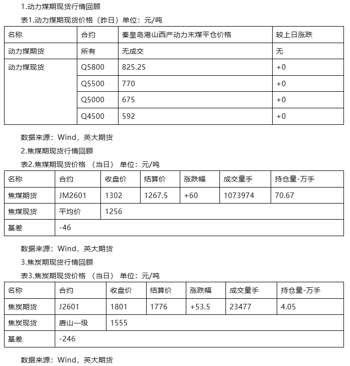 叠加2025年10月27日主流钢厂对焦炭采购价格实施第二次上调50-55元/吨;10月27日起最新一期神华外购煤大幅上涨10-12元/吨;前三季度中国神华煤炭平均销售价格(不含税)487元/吨同比减少13.7%。伴随国民经济稳步发展用电量需求的增长、迎峰度冬的即将启动和煤炭稳产增供保供形式的有效落实,动力煤供消仍将处于平衡格局的延续,煤价延续震荡运行态势。