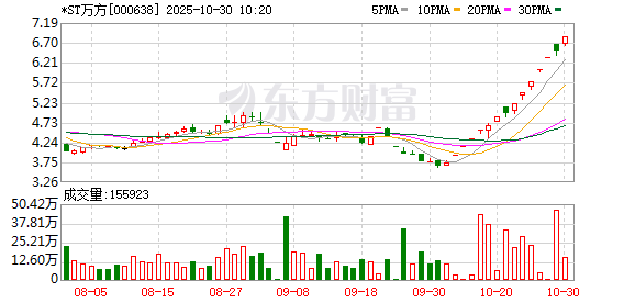*ST万方(维权)再度涨停,14个交易日内录得11个涨停,累计涨幅为82.89%,累计换手率为87.96%。截至9:39,该股今日成交量1515.18万股,成交金额1.03亿元,换手率4.89%。最新A股总市值达21.30亿元,A股流通市值21.21亿元。