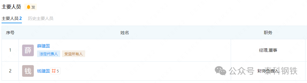 公开信息显示,薛建国目前职务为宝钢股份钢管条钢事业部总经理、党委副书记,钱建国职务为宝钢股份钢管条钢事业部总经理助理。