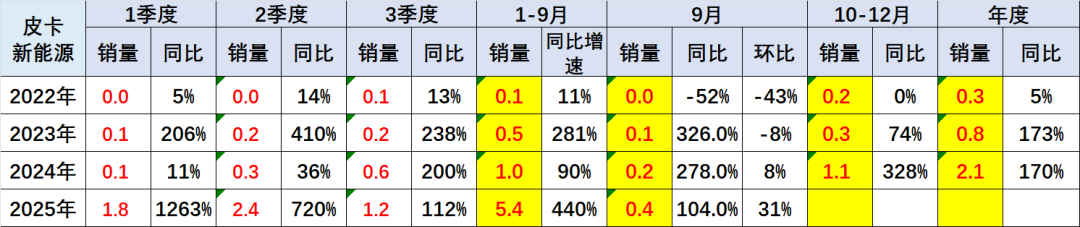 2024年全国新能源皮卡销量2.1万辆,同比增长170%;2025年9月新能源皮卡0.4万辆,同比增长104%,环比长增31%;1-9月累计新能源皮卡5.4万辆,增长440%,形成超强于燃油皮卡的较好走势。