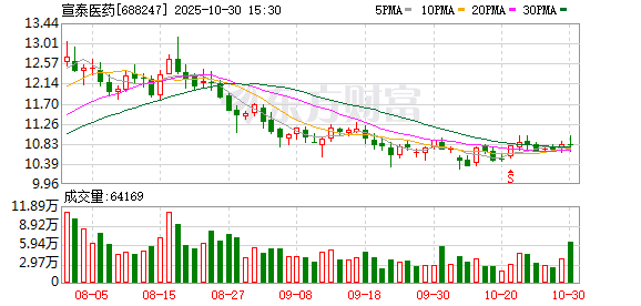 10月30日晚间,宣泰医药发布2025年第三季度报告。2025年前三季度,公司营业收入达3.31亿元,实现归母净利润6346.25万元。单季度来看,第三季度公司实现营业收入1.12亿元,归母净利润1787.68万元。