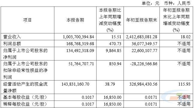 报告内容显示,西藏天路前三季度实现营收24.13亿元,同比增长18.02%;归母净利润2260.01万元,去年同期亏损6596.96万元,转亏为盈。
