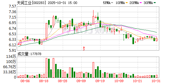 10月31日,天润工业(002283)发布公告,控股股东天润联合将其持有的4000万股股份于2025年10月30日解除质押,占其所持股份的22.86%及公司总股本的3.51%;截至公告披露日,天润联合累计质押股份为7250万股,占其所持股份的41.43%及公司总股本的6.36%。