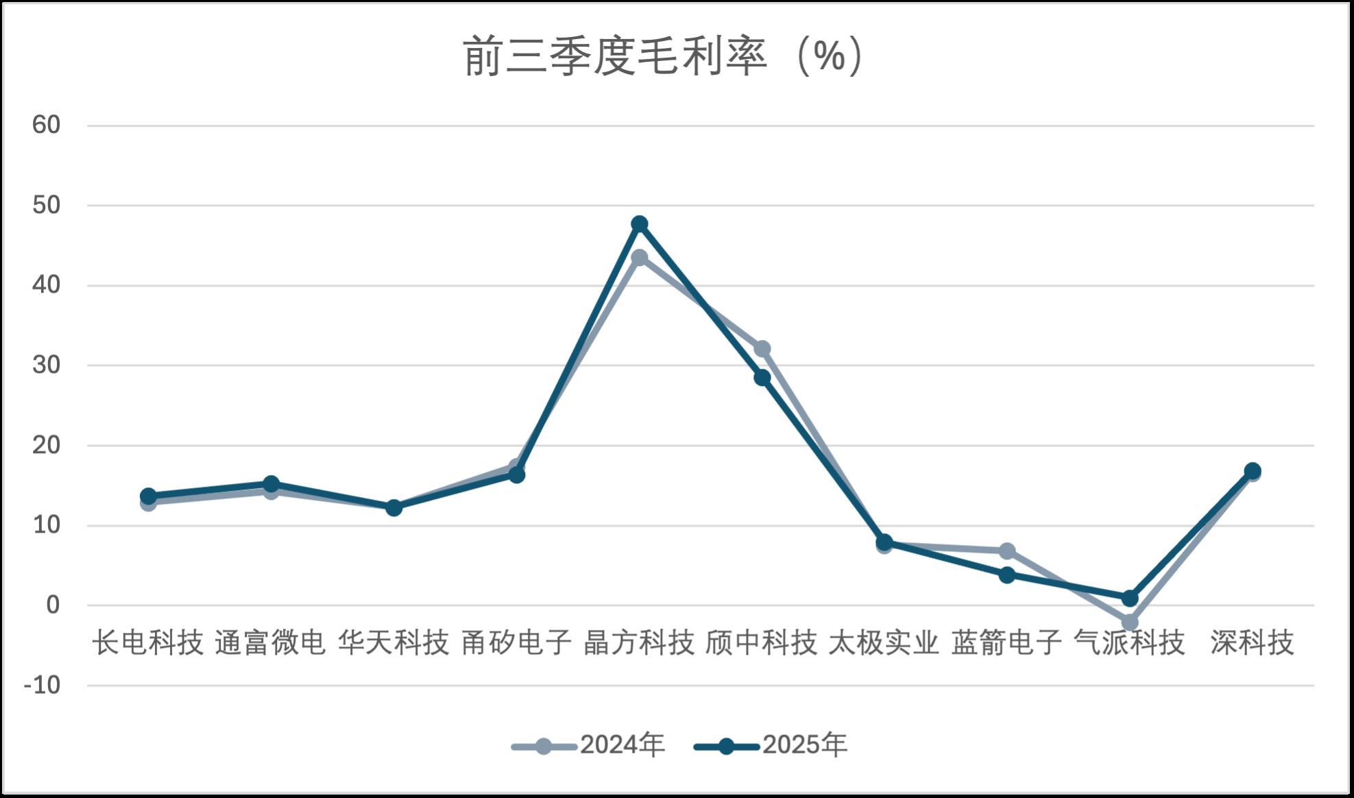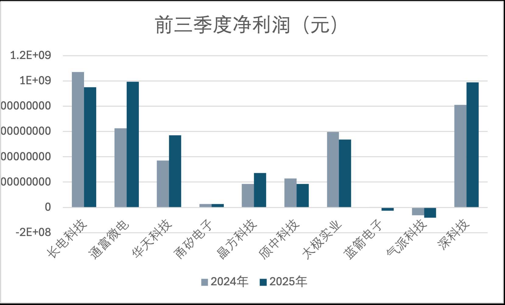 盈利表现则呈现出更为复杂的分化格局。通富微电成为最大亮点,前三季度净利润达到9.94亿元,同比增长近60%,这主要得益于其在高性能计算、5G通信等高附加值领域的提前布局,以及与国内外知名芯片设计企业的深度合作,使得其产品附加值大幅提升,盈利能力显著增强。华天科技净利润也实现了53.07%的同比增长,达到5.69亿元,反映出其在成本控制、产品结构优化等方面的积极成效,以及在市场需求旺盛时能够有效转化为利润的能力。晶方科技净利润同比增长45.62%,达到2.71亿元,显示出其在特色工艺和高端产品领域的竞争优势,尤其是在一些细分市场中能够获得较高的利润空间。深科技则保持了超过20%的稳健利润增长。