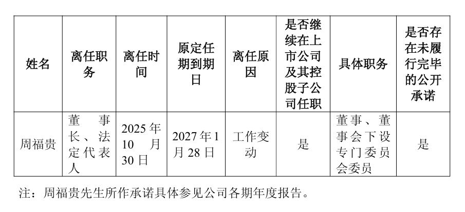 根据《公司法》《公司章程》及相关规定,周福贵先生辞去董事长职务后将作为公司董事继续履职,不会导致公司董事会成员低于法定最低人数。周福贵先生不存在应当履行而未履行的承诺事项,辞职后将继续遵守《上市公司董事和高级管理人员所持本公司股份及其变动管理规则》《上海证券交易所科创板股票上市规则》等规定及所作的相关承诺,并将按照公司相关规定做好交接工作。