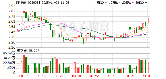 ST德豪再度涨停,5个交易日内录得3个涨停,累计涨幅为11.11%,累计换手率为8.24%。截至9:49,该股今日成交量2042.14万股,成交金额5460.66万元,换手率1.17%。最新A股总市值达47.32亿元,A股流通市值47.30亿元。