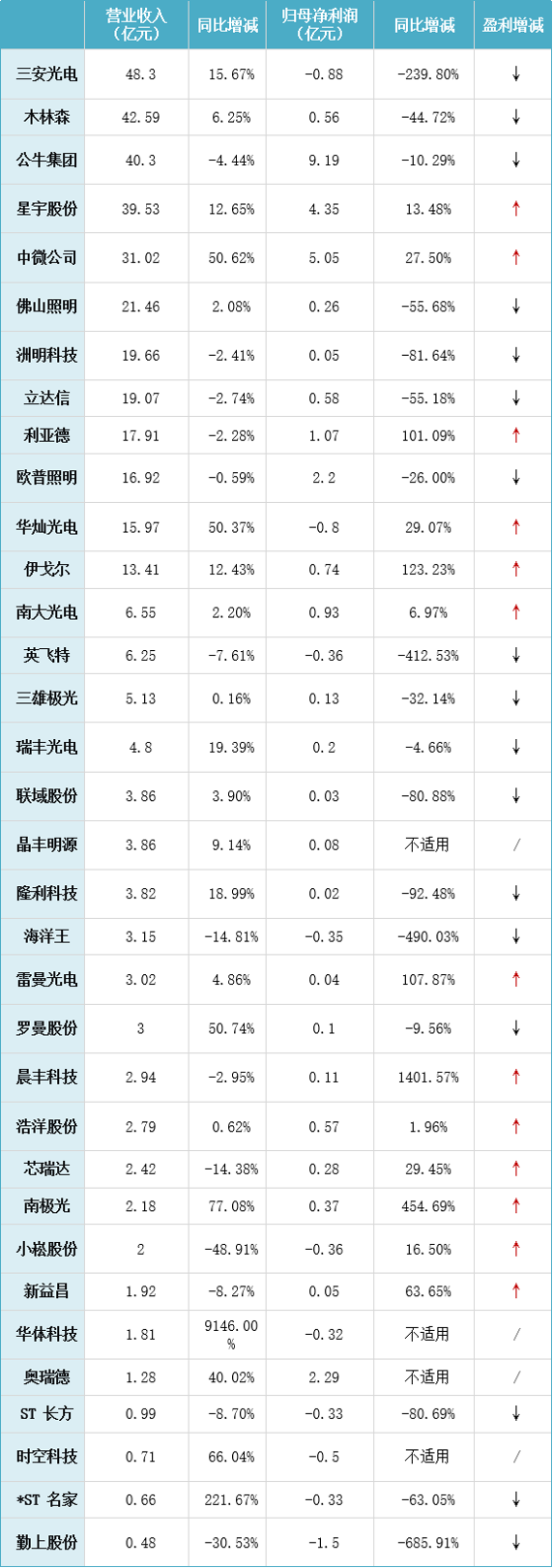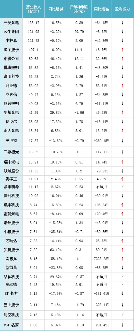 营收规模榜:三安光电、公牛集团、木林森位居前三
