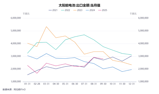 需求方面,经过上半年“抢装”后,国内光伏新增装机容量明显下滑,同时太阳能组件出口金额也在9月再度下跌,需求整体仍无明显起色。