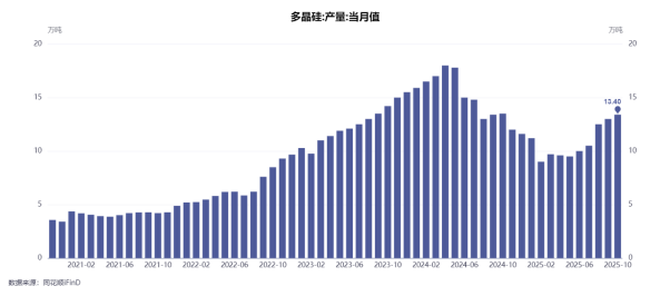 多晶硅产量自5月起持续上行,10月的13.4万吨已接近去年同期水平,行业减产力度不及预期。
