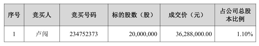 如今,该变卖已按期进行。京东网络司法拍卖平台公布的成交确认书显示,成交价为3628.8万元,竞买人为卢闯。