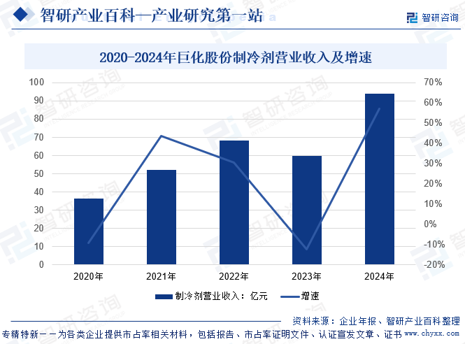 浙江巨化股份有限公司是国内领先的氟化工、氯碱化工新材料先进制造业基地,主要业务为基本化工原料、食品包装材料、氟化工原料及后续产品的研发、生产与销售。经过多年的发展,公司拥有氯碱化工、硫酸化工、煤化工、基础氟化工等氟化工必需的产业自我配套体系,并以此为基础,形成了包括基础配套原料、氟制冷剂、有机氟单体、含氟聚合物、含氟精细化学品等在内的完整的氟化工产业链,并涉足石油化工产业。作为制冷剂全球龙头企业,公司拥有第一至四代含氟制冷剂系列产品,同时拥有新型含氟冷媒(氢氟醚D系列、全氟聚醚JHT系列)、碳氢制冷剂产品(3.5万吨/年产能)以及系列混配制冷剂。2024年公司制冷剂实现营业收入93.99万吨,同比上涨57.08%。