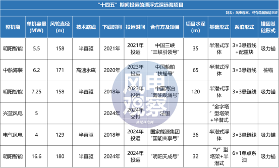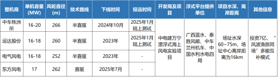 明阳智能、中船海装、金风、东方电气等整机巨头,或主动参与项目开发,或联合投资商共同研制各类漂浮式样机,合力推动技术进步。