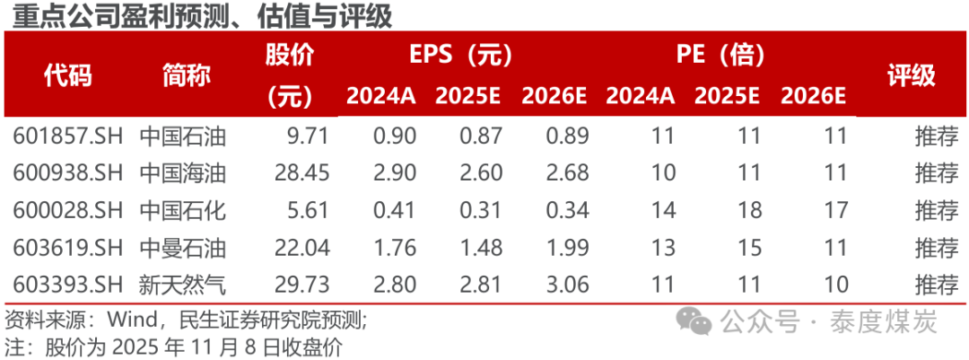 投资建议:推荐以下三条主线:1)石化行业“反内卷”政策风起,建议关注行业龙头且业绩稳定性强、持续高分红的中国石油、中国石化;2)油价有底,石油企业业绩确定性高,叠加高分红特点,估值有望提升,建议关注产量持续增长且桶油成本低的中国海油;3)国内鼓励油气增储上产,建议关注产量处于成长期的新天然气、中曼石油。
