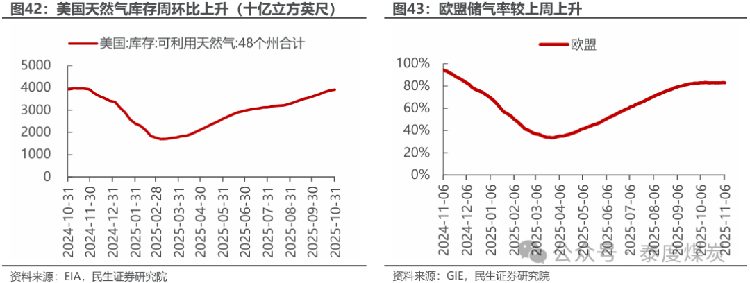 欧盟储气率下降。截至11月6日,欧盟储气率82.83%,较上周+0.02pct。
