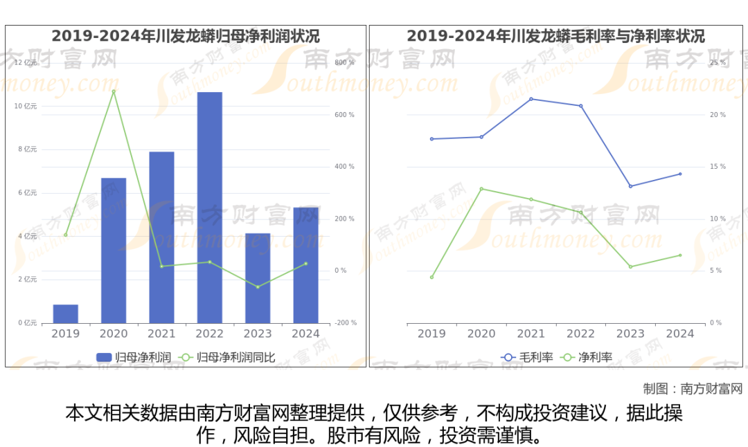 川发龙蟒财务数据显示(如上图): 2024年实现营业总收入 81.78亿,同比增长6.1%。近五年复合增长率(CAGR)为12.1%。