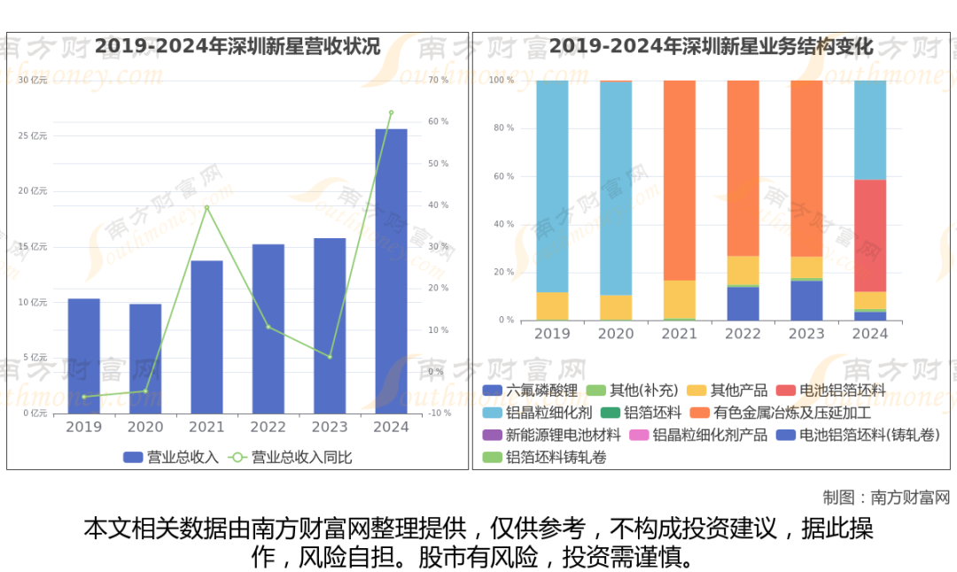 数据显示(如上图),深圳新星公司2024年营业收入25.63亿,同比增长62.32%,近5年复合年增长率(CAGR)26.98%。