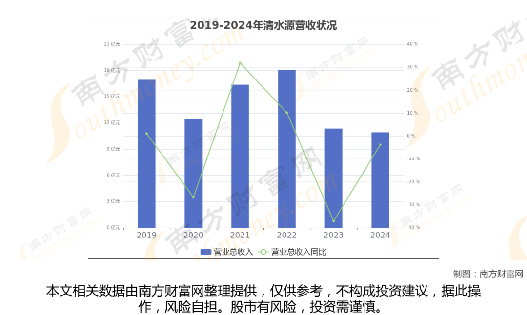 (如上图)清水源2024年全年营业收入为10.92亿,同比增长-3.77%,近五年复合年增长率-3.17%。