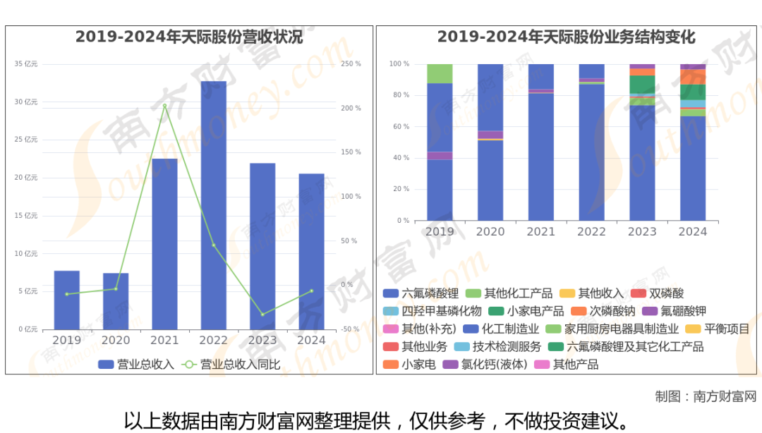 天际股份于2015年5月28日在深圳证券交易所上市,公司主营业务为主要研发、生产六氟磷酸锂及新型锂盐、添加剂产品,包括双氟代磺酰亚胺锂、二氟磷酸锂、草酸二氟硼酸锂、双草酸硼酸锂等及氟化盐系列产品。