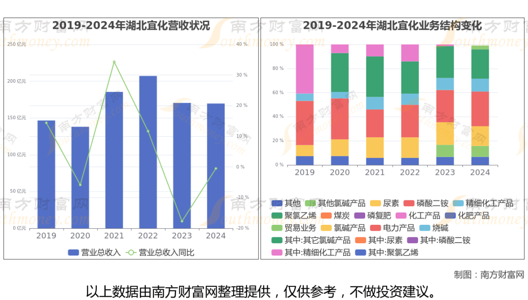 湖北宜化于1996年8月15日在深圳证券交易所上市,公司主营业务为尿素、磷酸二铵等化肥产品和聚氯乙烯等氯碱产品的开发、生产和经营。