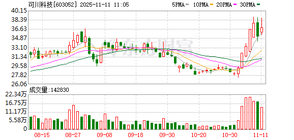 可川科技再度涨停,6个交易日内录得3个涨停,累计涨幅为32.72%,累计换手率为51.91%。截至9:38,该股今日成交量580.64万股,成交金额2.17亿元,换手率3.09%。最新A股总市值达72.72亿元。