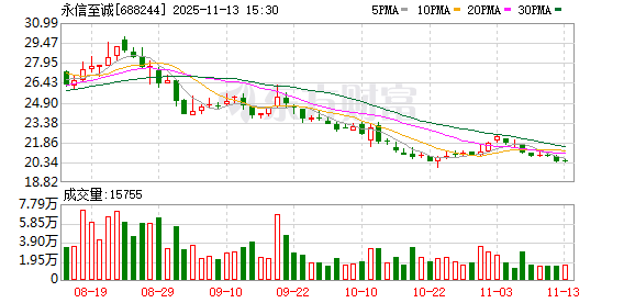 证券时报·数据宝统计显示,永信至诚今日收盘价为20.48元,上涨0.34%,日换手率为1.04%,成交额为3215.46万元,全天主力资金净流出371.15万元,近5日该股累计下跌2.52%,近5日资金合计净流出1096.30万元。