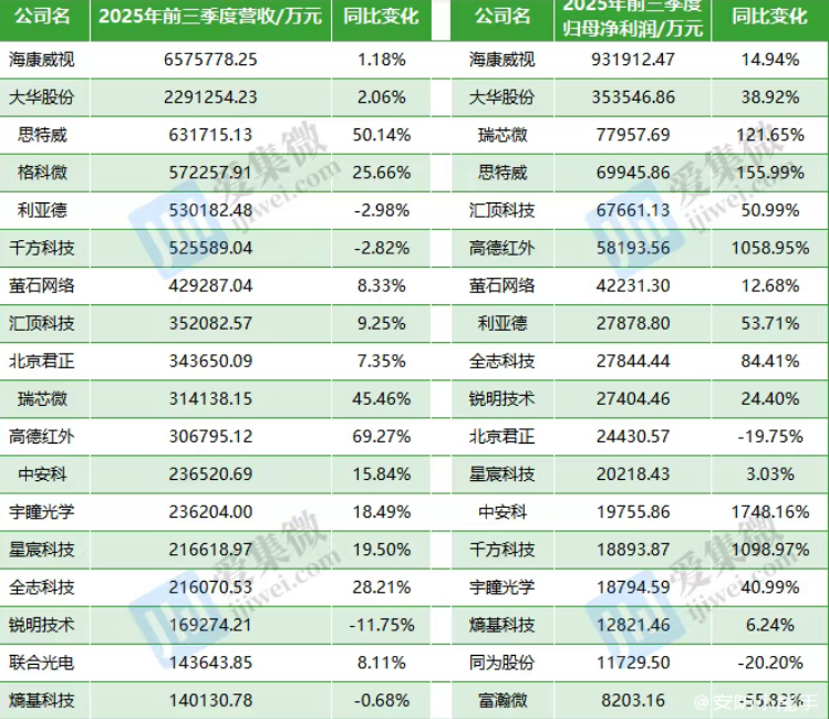 2025年前三季度,A股安防行业上市公司交出了一份亮眼的成绩单。行业整体呈现出“营收稳步增长、盈利能力显著提升、运营效率持续优化”的良好发展态势。