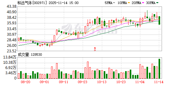 和远气体今日跌停,全天换手率7.98%,成交额4.61亿元,振幅11.10%。龙虎榜数据显示,机构净卖出2078.96万元,营业部席位合计净卖出2715.35万元。