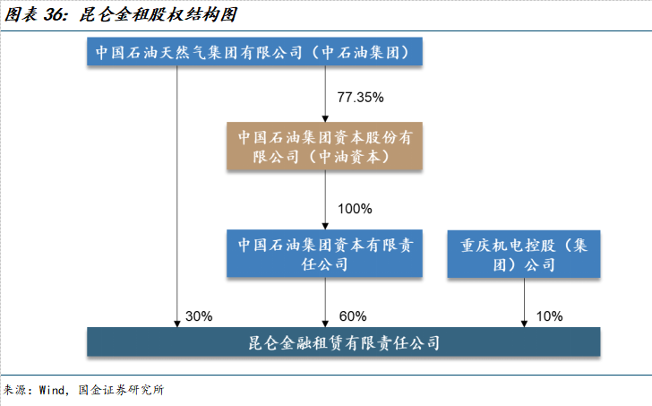 截至2024年末,昆仑金融租赁的股权结构为:中油资本持股60%,中国石油集团持股30%,重庆机电持股10%。
