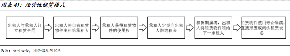 (2)经营租赁业务:在这一模式下,租赁物所有权归属昆仑金融租赁,由昆仑金融租赁承担一定的租赁物残值处置风险。因此,经营租赁具有直接服务实体经济、抵税降本、灵活出表等优势,最能体现金融租赁“融资+融物”的功能特色。