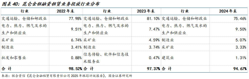 2.3 昆仑金融租赁:具备大型产业集团背景,在交通运输领域具有核心竞争力