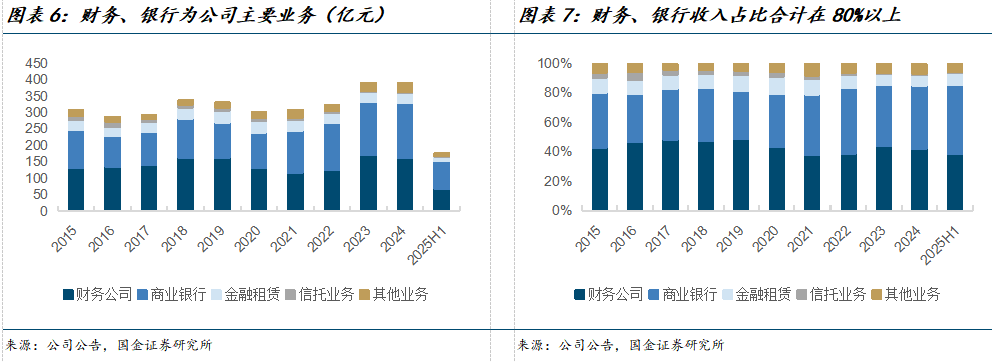 1.3 主营业务:商业银行、财务公司是主要业务板块,利息收入为主