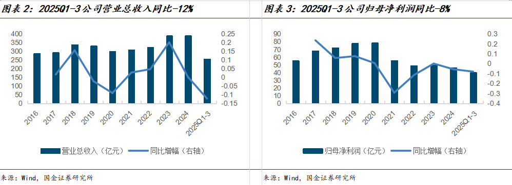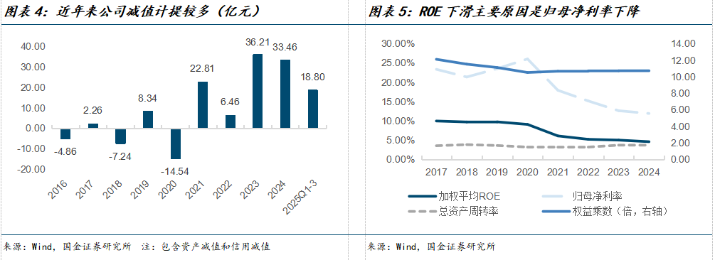 2025Q1-3公司实现营业总收入256.45亿元,同比-12.2%;实现归母净利润39.97亿元,同比-7.9%;加权平均ROE(未年化)同比-0.42pct至3.87%。业绩下滑预计主要系利率下行背景下,公司商业银行、金融租赁等业务板块净利差有所下降以及公司基于审慎原则减值计提较为充分。