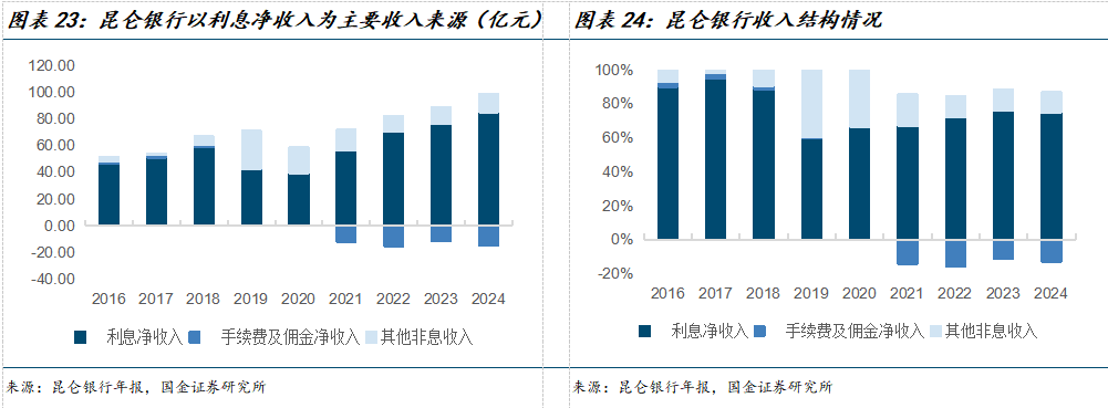 收入结构:利息净收入是昆仑银行最主要的收入来源。具体而言,昆仑银行主营业务包括吸收公众存款,发放短、中、长期贷款,办理国内外结算、票据承兑与贴现等传统银行业务,以及公募基金销售业务。其盈利主要来源于信贷业务的息差收益和中间业务的手续费收入,营业收入以利息净收入和投资收益为核心构成。