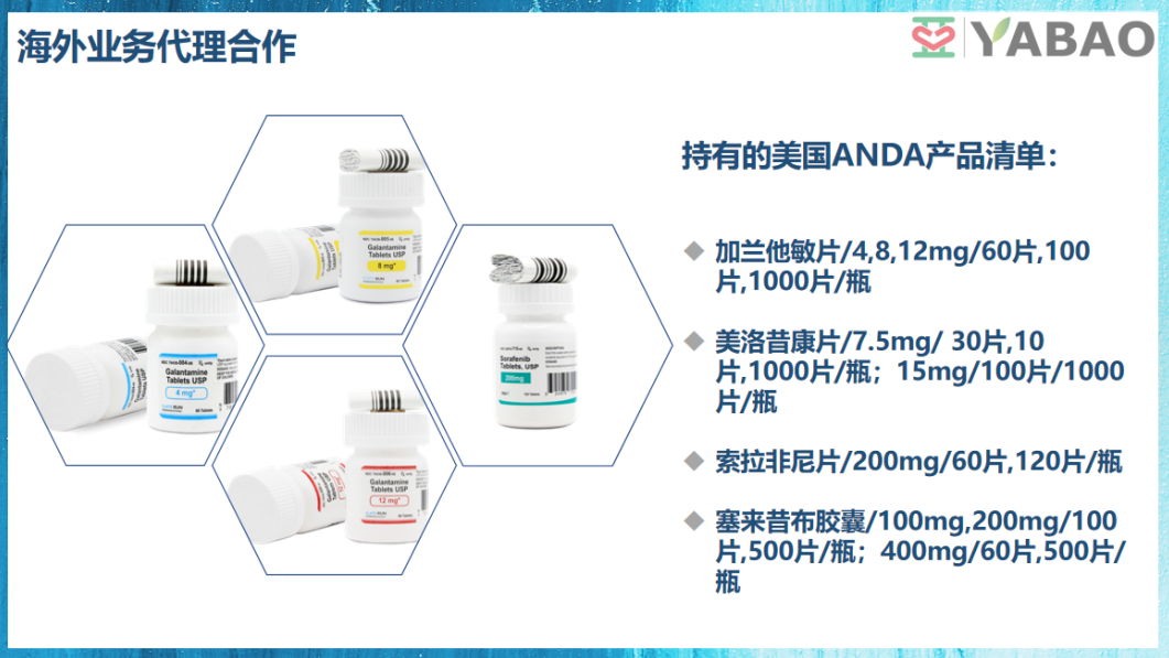 2011年全国首批通过10版GMP认证。2013年12月获得了美国FDA cGMP认证通过。2015、2019年周期性检查和美国产品批准前检查零缺陷。2022年4月通过FDA的周期性检查。2017年制剂产品氢溴酸加兰他敏成功美国上市,截止2021年,该产品占美国市场的45%。2022年12月索拉菲尼片美国市场上市销售。