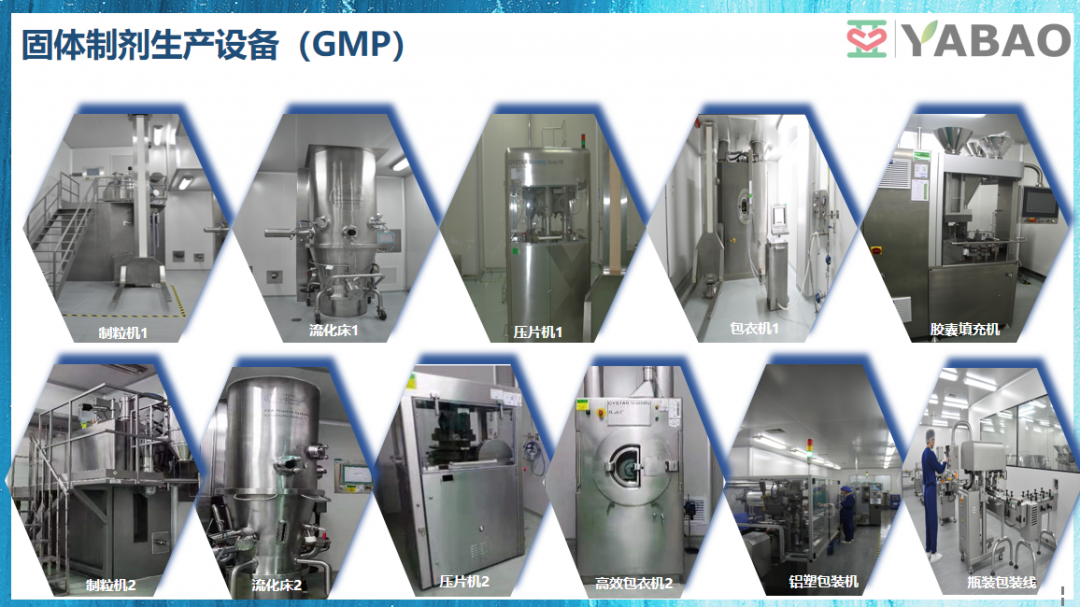 根据固体制剂工艺要求,配有称量装置、传送装置、高效剪切式制粒机、流化床、整粒机、挤出滚圆机、IBC混合机、压片机、包衣机、瓶装包装线、铝塑包装线等国际一流的全进口设备,可用于微丸包衣、微片、双层片、包芯片、肠溶片、缓控释制剂等工艺的实现。所有设备都具备审计追踪和在线打印功能。同时预留三条生产线,待市场增容后进行扩大建设。目前固体制剂生产能力可实现20亿片/年、硬胶囊年3亿粒。