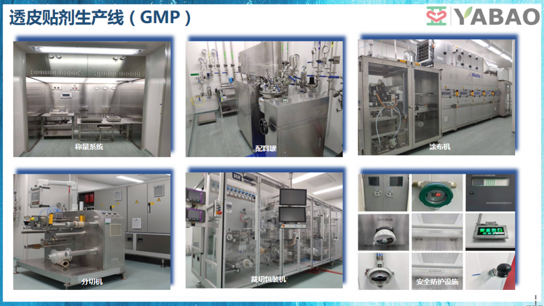 2019年按照FDA标准新建溶剂型透皮贴剂车间,引入瑞士Mathis涂布机,涂布精度小于±2μm,一次可复合五层结构。配有2-8L和15-50L的搅拌罐,能够满足不同批量的产品生产,搅拌罐和内包均配置了充氮气装置,解决了敏感性强的产品的稳定性。采用德国HH裁切机包装机,可包装入袋、照相识别剔废系统、背衬膜可打印信息、包装袋充氮、离型膜互叠易撕方式、离型膜打凹凸点(放冷流粘袋),提高了产品成型的美观度及生产效率。全线采用自动在线监测多指标多模式全过程质量控制系统。在日常生产研发过程中掌握了消除胶体气泡、成品析晶等解决方法。溶剂胶贴年达产600万贴。并配套国际最先进的检测分析仪器设备及相关的专业技术人员。